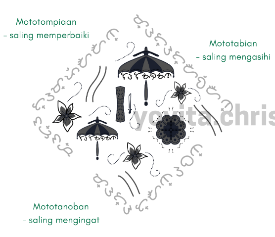 Trimoto ini menekankan pentingnya hubungan sosial yang melandasi ketulusan dan tanggung jawab bersama. Dalam versi dialek Sulawesi Utara.